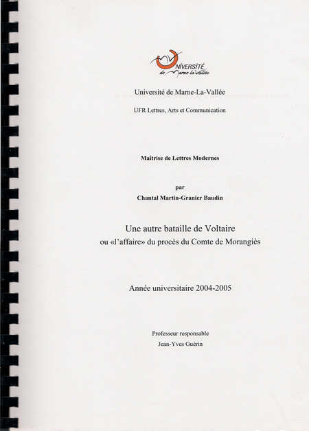 Une autre bataille de Voltaire, maîtrise de Lettres Modernes, 2005.